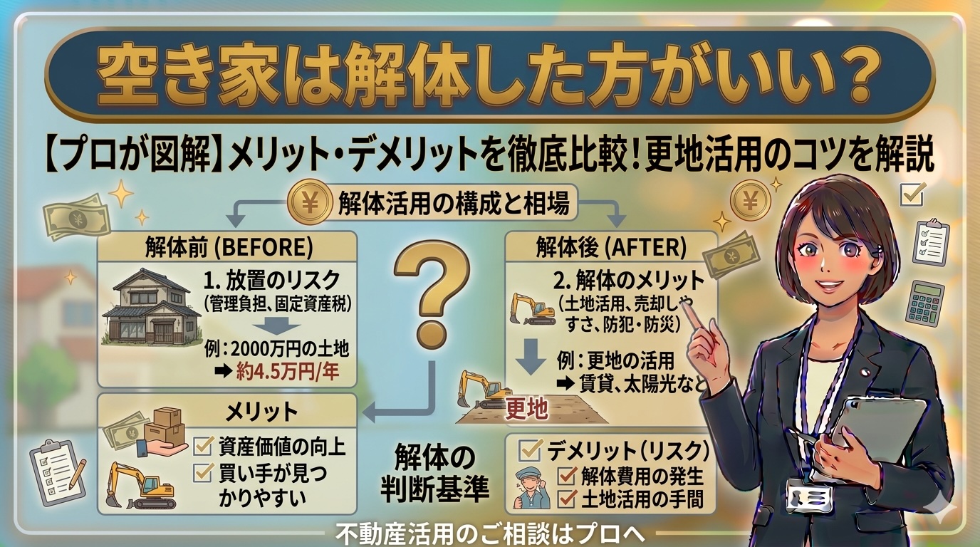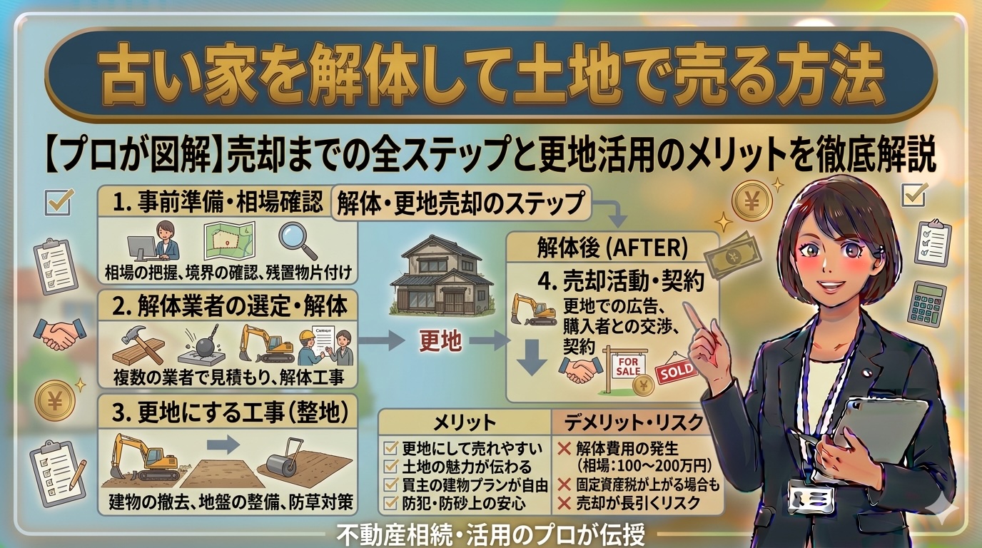 確かに、建物の状態によっては解体して更地にした方が売れやすくなるケースもあります。しかし、解体には費用がかかるため、事前に正しい手順と判断基準を理解しておくことが重要です。