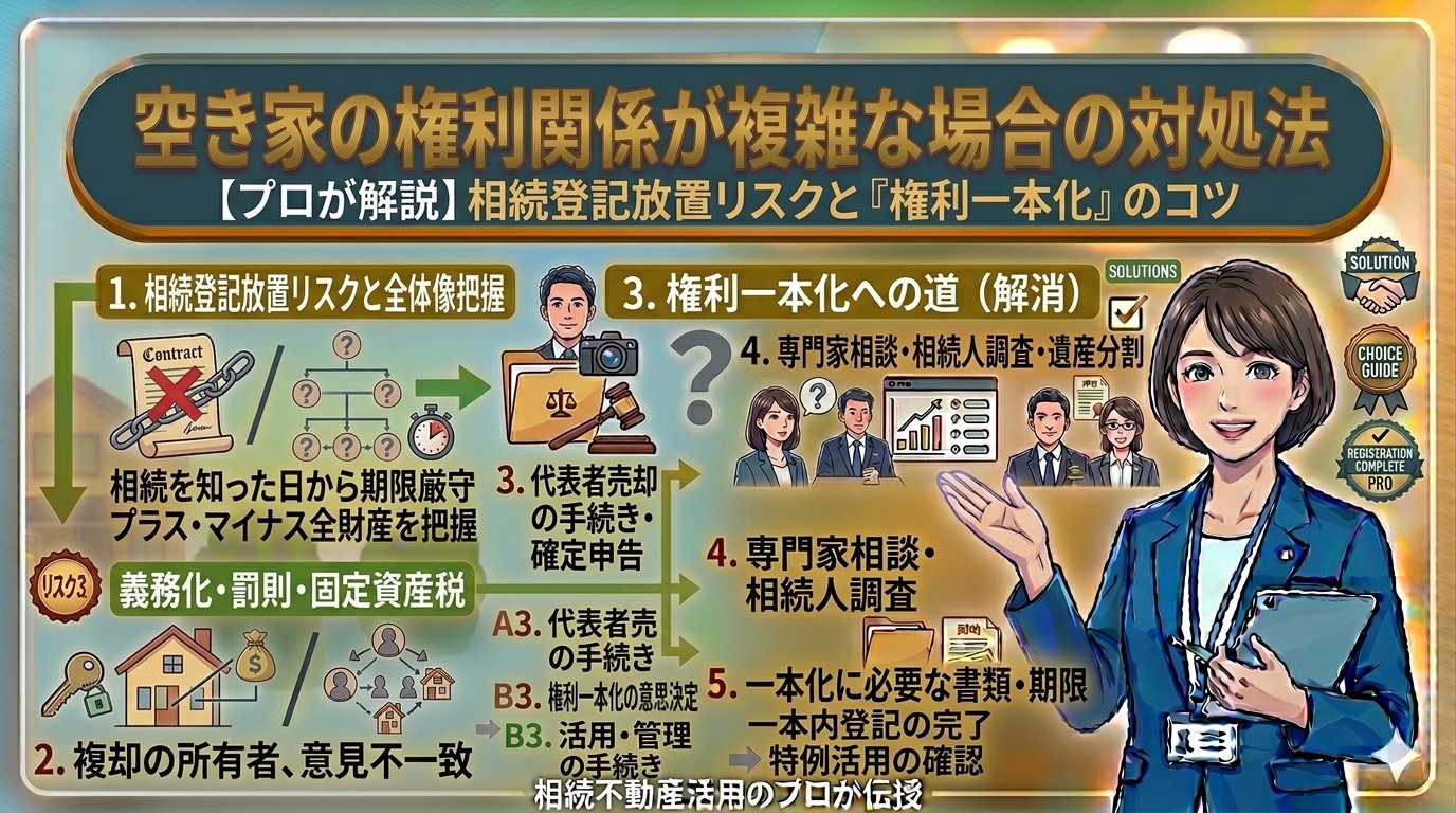 この記事では、権利関係が複雑な空き家の原因と対処法を初心者にもわかりやすく解説します。