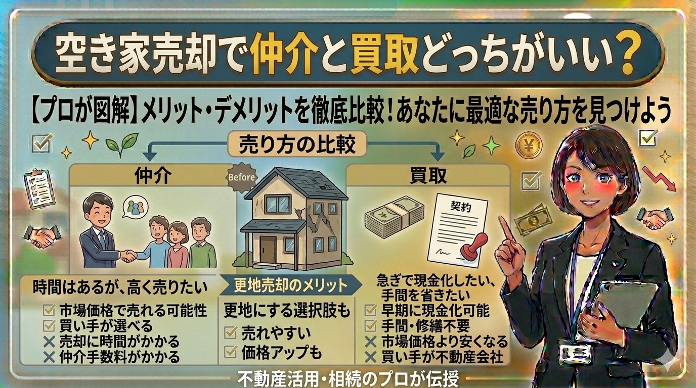 空き家を売却する際に、多くの方が悩むのが「仲介と買取どちらを選べばいいのか」という点です。