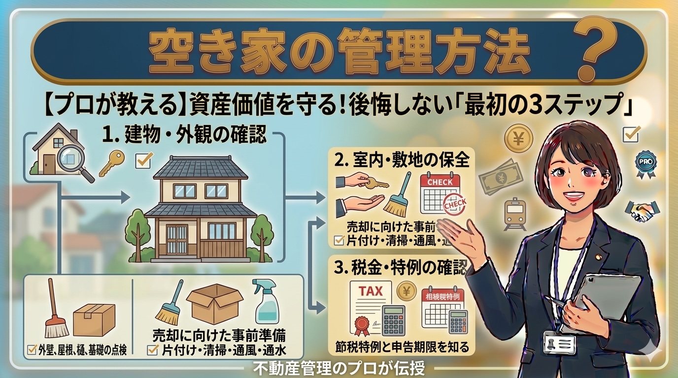 空き家は放置すると管理や税金の負担が増えるため、売却や活用方法を早めに検討することが重要です。まずは不動産会社に査定を依頼し、現在の価値を確認することから始めてみましょう。