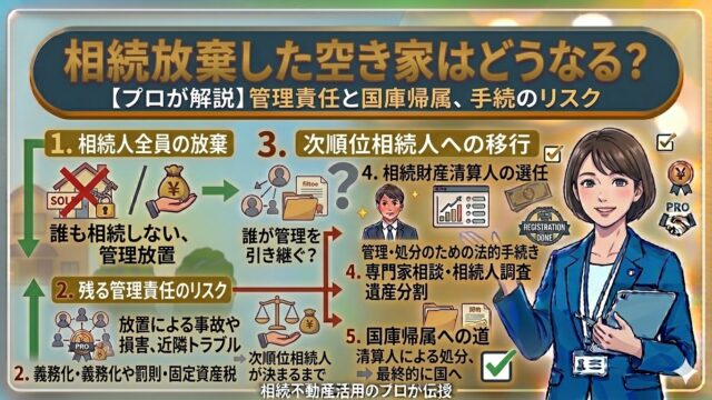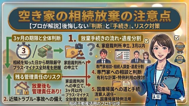空き家を相続したときに👉「維持費がかかるから相続放棄したい」👉「放棄すれば楽になるのでは?」と考える方は多いです。しかし、相続放棄は一見シンプルに見えて👉 知らないと後悔する落とし穴が多い手続きです。この記事では、空き家の相続放棄の注意点に...